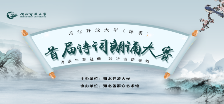 10月28-30日,在全國14個“敬老月”,由河北開放大學主辦,河北省群眾藝術館協(xié)辦的“誦讀華夏經(jīng)典 聆聽古詩書韻”首屆河北開放大學(體系)詩詞朗誦大賽在石家莊舉行。11個設區(qū)市開放大學、定州、辛集、雄安新區(qū)和河北老年開放大學各參賽隊伍參加了此次比賽。比賽最終產(chǎn)生了個人賽和團體賽的一、二、三等獎和若干優(yōu)秀獎。