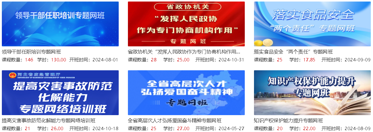 河北干部網絡學院由河北開放大學承辦運營,在省委組織部的領導下,按照中共河北省委黨員干部教育工作領導小組要求,認真落實《關于印發〈2024年河北干部網絡學院專題網班計劃〉的通知》(冀黨干教字[2024]2號),與省直廳局緊密合作,成功舉辦了“領導干部任職培訓”、“發揮人民政協作為專門協商機構作用”、“落實食品安全‘兩個責任’、“提高災害事故防范化解能力”、“全省高層次人才弘揚愛國奮斗精神”、“知識產權保護能力提升”等全省調訓網班,培訓學員共計110555人次,各網班結業率均在90%以上,助推我省干部網絡培訓達到新的高度。