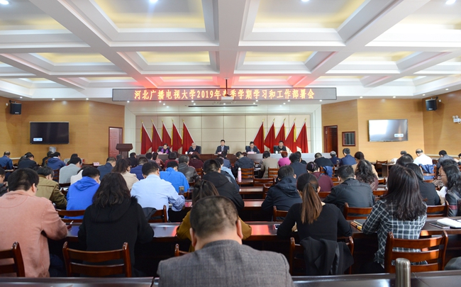 校長鄧明立對2019年工作進行了部署。他指出,今年是新中國成立70周年大慶之年,是決勝全面建成小康社會、實現(xiàn)第一個百年奮斗目標的關鍵之年,是深入貫徹落實全國全省教育大會精神的開局之年,也是我校深化轉型發(fā)展、建設河北開放大學的沖刺之年。學校要按照“圍繞一個中心,堅持兩個著力,把握六個方面,實施九項重點任務”的“1269”思路,圍繞戰(zhàn)略轉型這一中心,以社會需求為宗旨,在領導關心、百姓關注的地方著力;以事業(yè)發(fā)展為導向,在學校改革轉型、跨越升級的關鍵處著力。要做好教育教學改革、內(nèi)涵建設、學歷繼續(xù)教育、非學歷繼續(xù)教育、校內(nèi)管理體制改革和黨建六個方面的九項重點任務:加強政治理論學習,把深入學習貫徹習近平新時代中國特色社會主義思想和黨的十九大精神不斷引向深入;多措并舉、持續(xù)發(fā)力,切實加強學校黨建工作;做好換屆和校內(nèi)管理體制機制改革,不斷激發(fā)學校事業(yè)發(fā)展活力;穩(wěn)步推進“送培下鄉(xiāng)”項目,探索高校與地方政府合作、服務鄉(xiāng)村振興戰(zhàn)略新模式;發(fā)揮電大系統(tǒng)辦學等優(yōu)勢,深入開展社區(qū)和老年教育;扎實推進干部網(wǎng)絡教育,打造河北干部網(wǎng)絡培訓品牌;各類辦學形式采取有力措施,持續(xù)擴大招生規(guī)模;著力打造高融合度的互聯(lián)網(wǎng)+遠程教育學習場景,優(yōu)化用戶體驗,不斷提升信息化和資源建設水平;繼續(xù)秉持“以學科為牽引,以專業(yè)為支撐,以課程為核心”的內(nèi)涵建設思路,加大專業(yè)和課程建設力度。