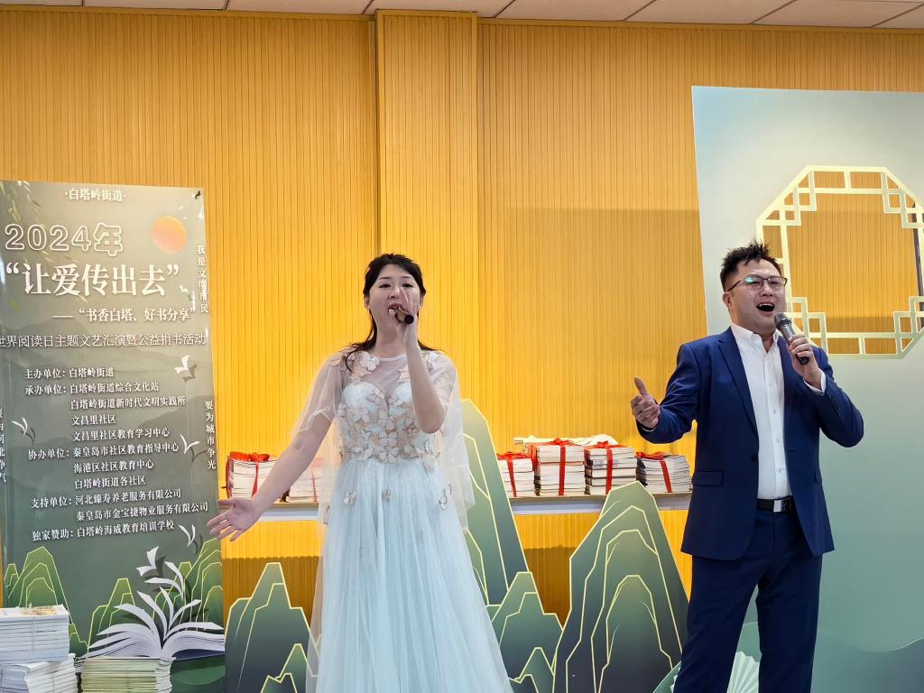 2024年4月2日,在第29個世界讀書日即將到來之際,秦皇島市社區教育指導中心、秦皇島市海港區社區教育管理中心、白塔嶺街道綜合文化站、白塔嶺街道新時代文明實踐所、文昌里社區、文昌里社區教育學習中心、白塔嶺街道各社區聯合舉辦了“讓愛傳出去”——白塔嶺街道“書香白塔好書分享”世界讀書日主題文藝匯演暨公益捐書活動啟動儀式。