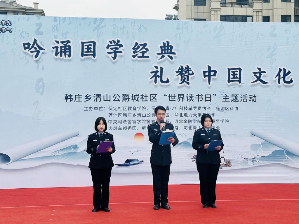 為深入推進(jìn)新時(shí)代全民閱讀工作,助力“書香保定”建設(shè),營(yíng)造愛讀書、讀好書、善讀書的濃厚氛圍,4月19日,在第29個(gè)世界讀書日來臨之際,保定社區(qū)教育學(xué)院聯(lián)合清山公爵城社區(qū)舉辦了“吟誦國(guó)學(xué)經(jīng)典,禮贊中國(guó)文化”世界讀書日主題活動(dòng)。保定社區(qū)教育學(xué)院副院長(zhǎng)趙國(guó)華參加。