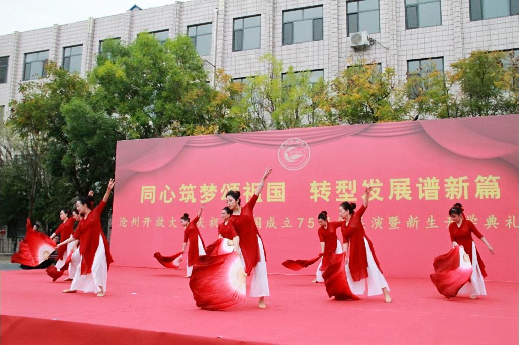 9月28日上午,為引導廣大師生傳承紅色基因、賡續紅色血脈,樹立起為實現中華民族偉大復興中國夢而努力奮斗的遠大志向,滄州開放大學舉辦慶祝新中國成立75周年展演暨新生開學典禮。滄州全市開放大學體系領導班子成員、滄州開放大學全體教職工,2024年秋季新生和獲得學士學位代表600余人參加活動。