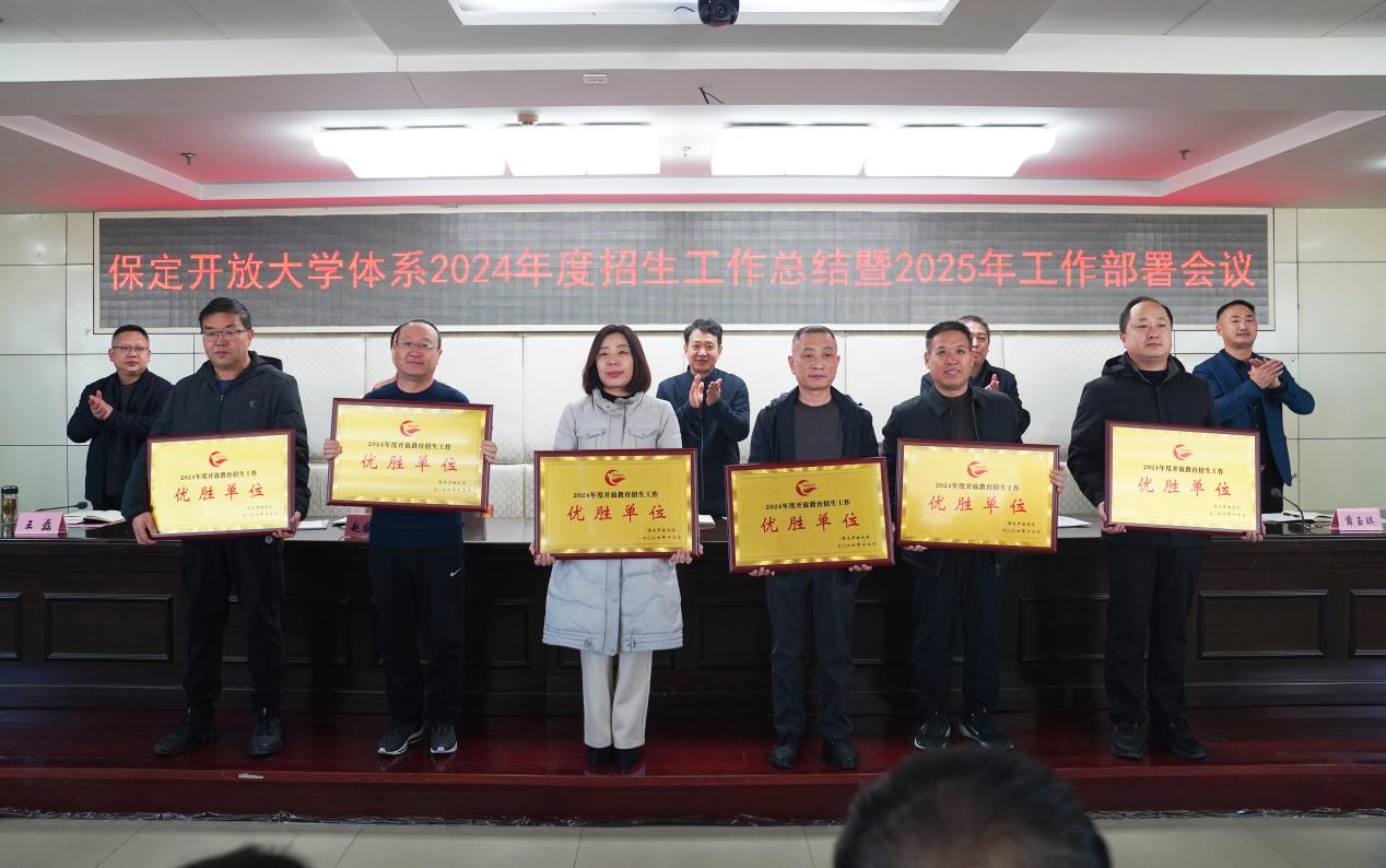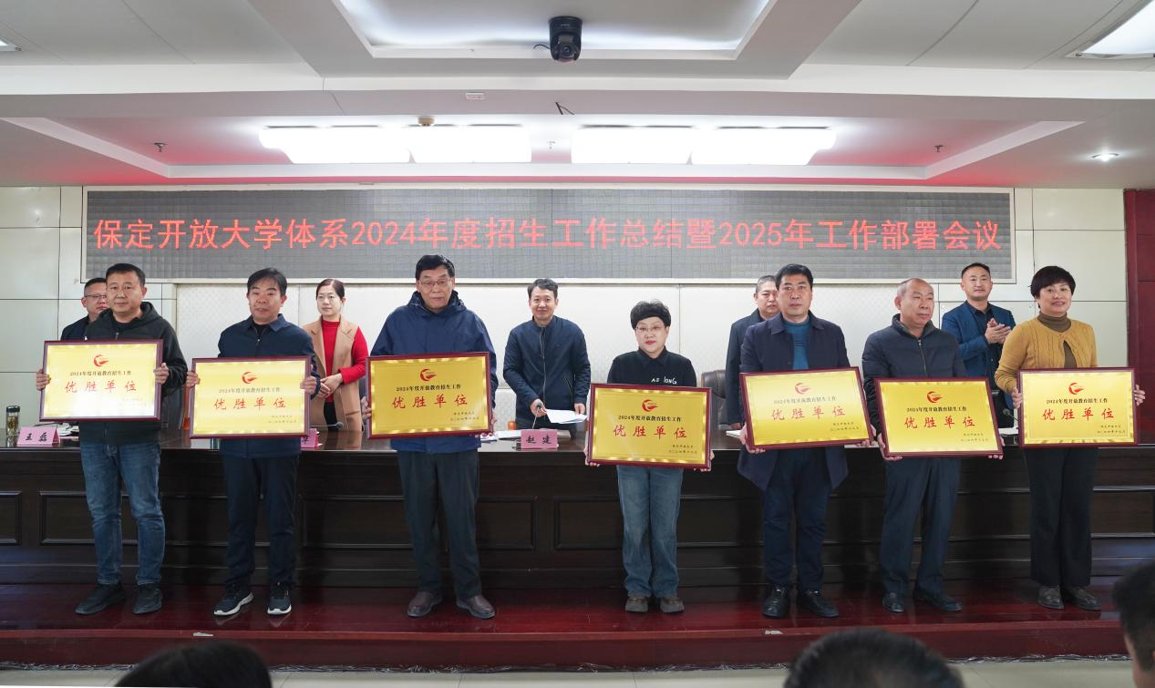 會上,顧文博宣讀了2024年度開放教育招生工作表彰決定,薛玉琪對2025年招生工作進行了安排部署,招生辦公室副主任趙悅紅對2024年招生工作進行了總結發言,曲陽、淶水、滿城開放大學作了交流發言,與會領導為2024年度開放教育招生工作突出貢獻單位、優勝單位、先進單位及先進科室頒發了榮譽獎牌。(撰稿:尚梟茗     校對:張寧    審核:顧文博)