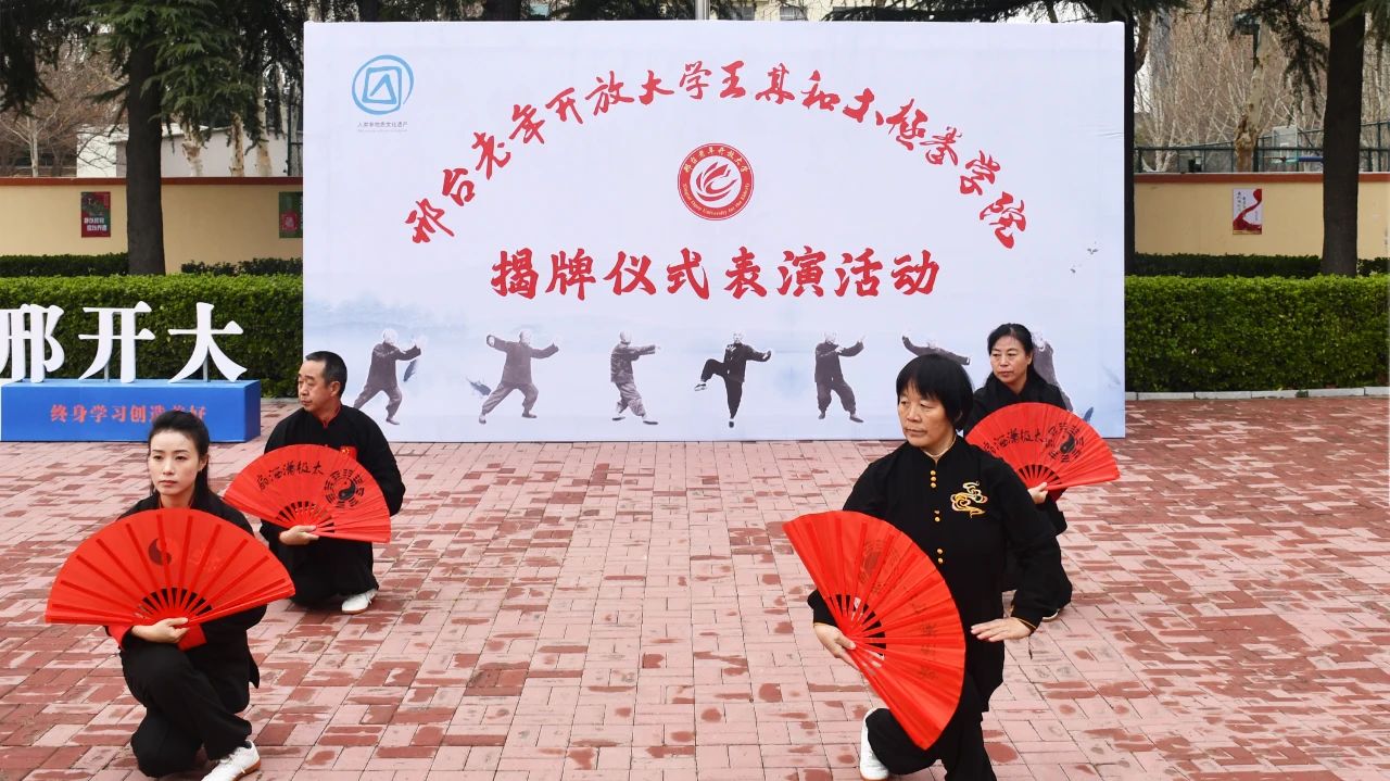 為推動學歷教育與非學歷教育均衡發展,進一步強化老年教育品牌建設,邢臺老年開放大學和河北省王其和太極拳協會合作,成立邢臺老年開放大學王其和太極拳學院,3月15日上午舉辦了揭牌儀式。中國非遺保護協會太極拳專委會副主任、河北省王其和太極拳協會主席檀杏敏,邢臺市委教育工委書記、市教育局黨組書記、局長于京禮,邢臺開放大學黨委書記宗召偉和校長劉彥君出席揭牌儀式,邢臺開放大學領導班子成員、副科級以上干部,以及河北省王其和太極拳協會領導及嘉賓共70余人參加活動。