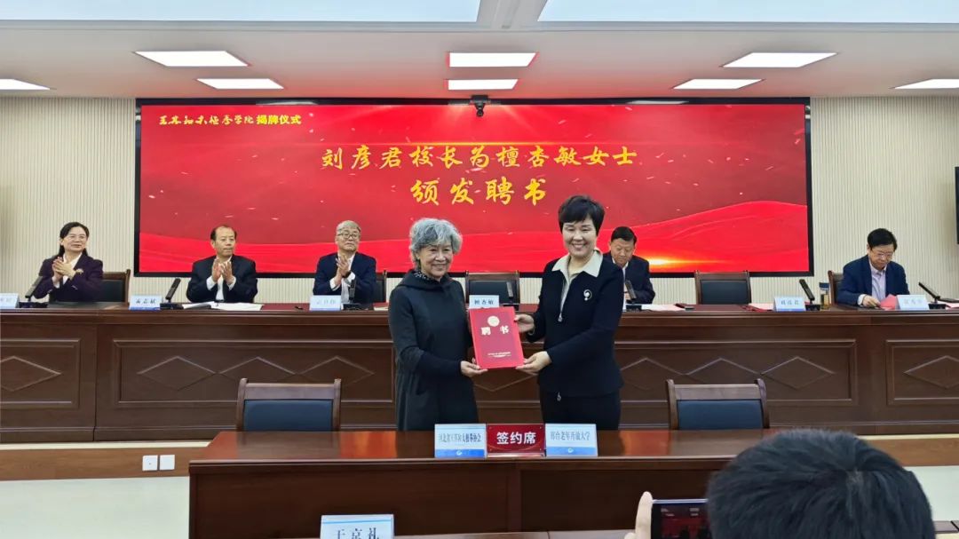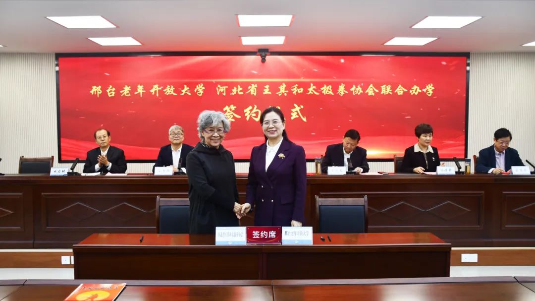 檀杏敏和宗召偉為邢臺老年開放大學王其和太極拳學院揭牌,劉彥君校長為檀杏敏頒發聘書,楊密婷副校長代表學校和河北省王其和太極拳協會簽署了合作協議,河北省王其和太極拳協會副主席孟志斌講解了王其和太極拳的歷史淵源和發展脈絡。