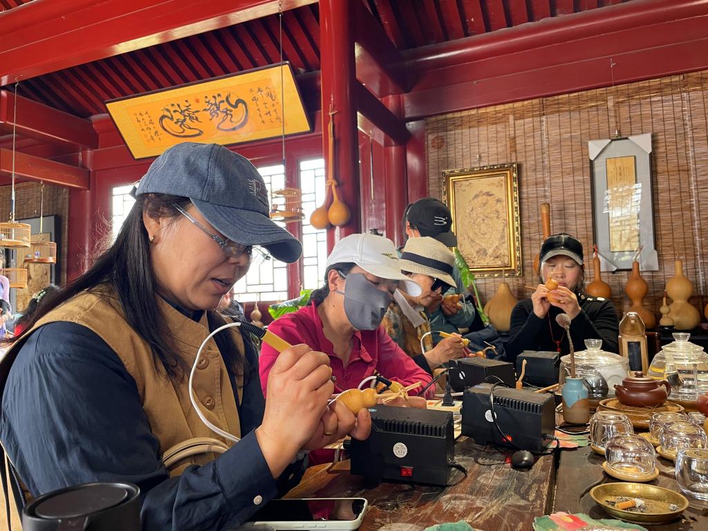 在活動(dòng)展區(qū),學(xué)員們一邊欣賞運(yùn)河美景,感受千年運(yùn)河的文化脈動(dòng),一邊體驗(yàn)雕版印刷姓氏圖騰、葫蘆烙刻姓名、手工香囊制作。參與學(xué)員張淑霞感慨:“原來我們的姓氏里藏著運(yùn)河的‘血脈’,這次活動(dòng)既長(zhǎng)了知識(shí),又找回了文化歸屬感?!?/p>