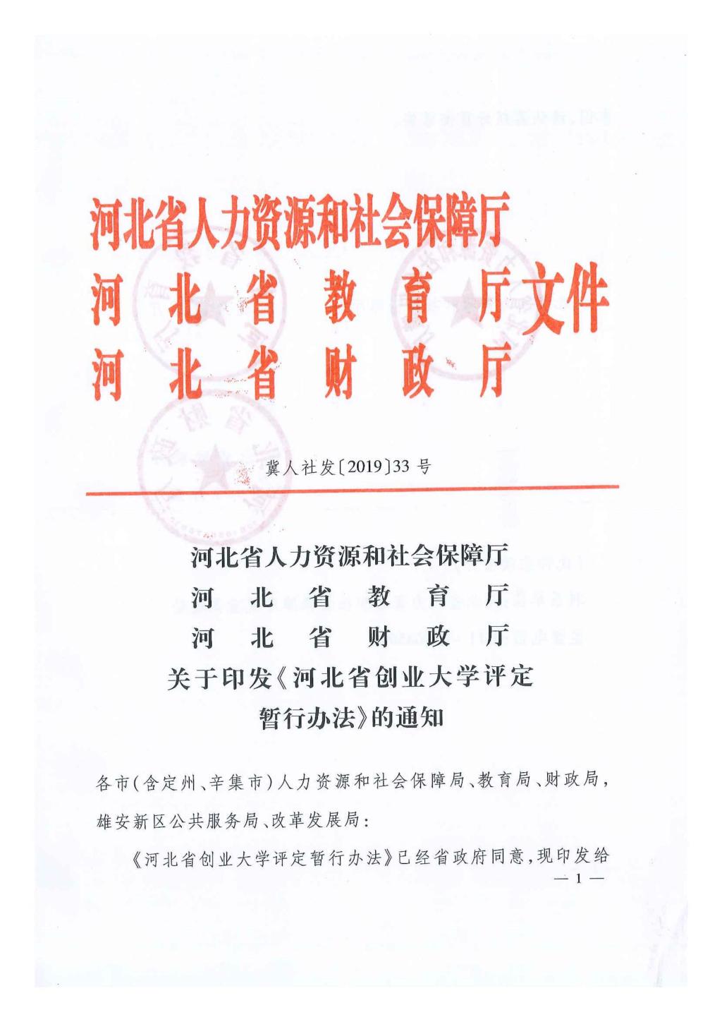 河北省人力資源和社會保障廳 河北省教育廳 河北省財政廳關于印發《河北省創業大學評定暫行辦法》的通知