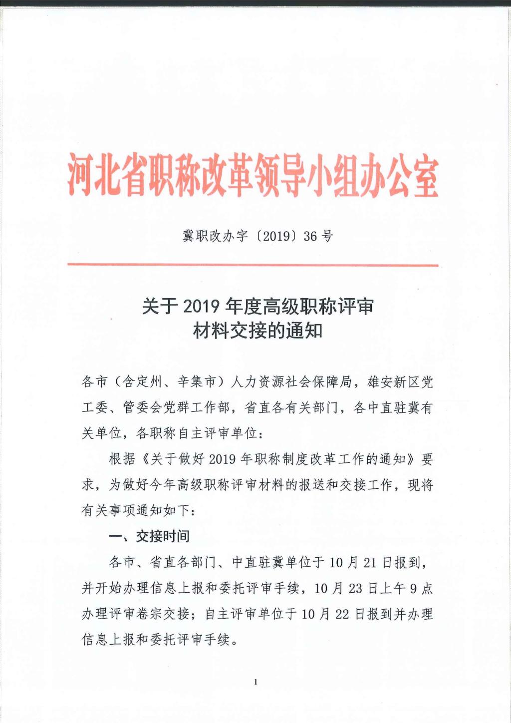 關(guān)于2019年度高級職稱評審材料交接的通知