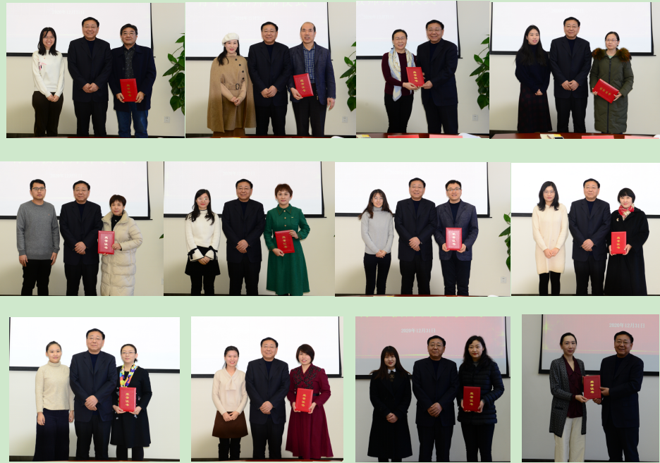 教學支持部黨總支書記郝風武宣讀導師和青年教師名單。郭立志為導師頒授證書,并與結對的導師和青年教師合影。