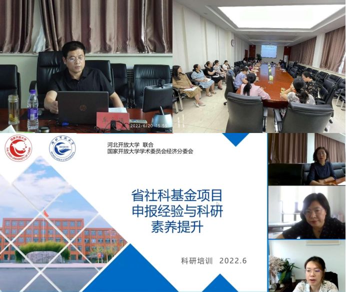 為聚焦科研提質,賦能科研創新,提升廣大教師的科研能力和學術水平,2022年6月20日下午,我校聯合國家開放大學學術委員會經濟分委會舉辦科研培訓會,邀請中共河北省委黨校牟永福教授做“省社科基金項目申報經驗與科研素養提升”專題講座。培訓會采用“現場會議+遠程視頻”形式舉行,河北開放大學本部教師和科研人員近20人在辦公樓一樓會議室參會,河北開大體系教師、科研管理人員以及國家開放大學學術委員會經濟分委會委員、國開辦學體系部分教師100余人線上參會。國家開放大學學術委員會經濟分委會主任委員、天津開放大學教務處處長楊冬梅教授和國家開放大學學術委員會經濟分委會副主任委員劉志芳教授分別致辭講話。會議由科研與規劃處處長張淑蓮教授主持。